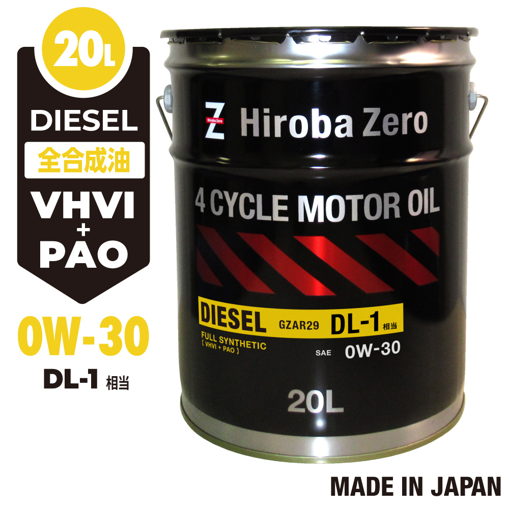 (モニター価格) 車用 ディーゼルオイル 20L/0W-30 [DL-1] 全合成油 自動車用 ディーゼルエンジンオイル AR2 ヒロバ・ゼロ