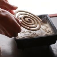 消したい時間分の長さで折ることで、タイマー代わりにもなります。蚊取り線香が1cm燃えるのにかかる時間はだいたい5分。灰を敷いて使う蚊遣りならではの便利技です。