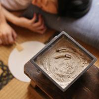 燃えた灰は、敷いてあった灰の上にどんどん積もっていきます。角鉢のように深さがあるので、よほど強風が吹かなければ、中の灰が飛び散ることもめったにありません。見た目にもよく後片付けもしなくていい便利な蚊遣りです。
