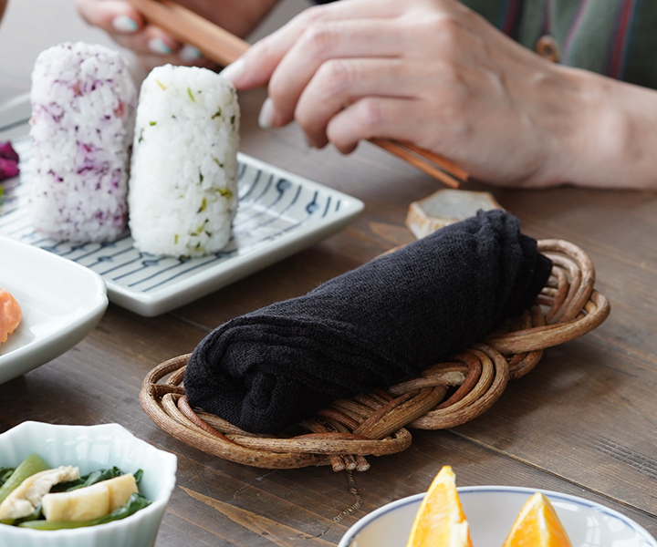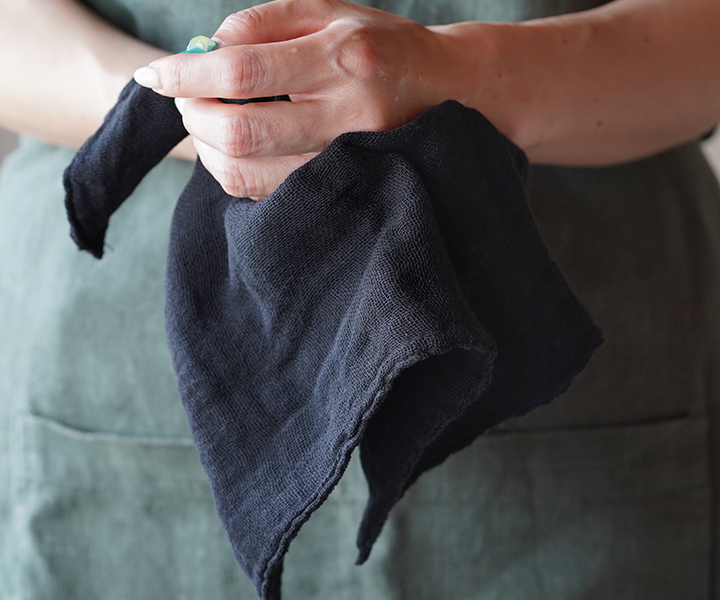 吸水、速乾、通気性、肌触りに優れた「かやお手ふき」は、水仕事でさっと手を拭く時に丁度良いサイズ感。水分をすばやく吸水し、すぐ乾き、嫌なにおいがつきにくく衛生的。熱にも強く丈夫です。
