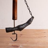 昔ながらの技術と知恵を用い、天然木で作られた自在鉤。