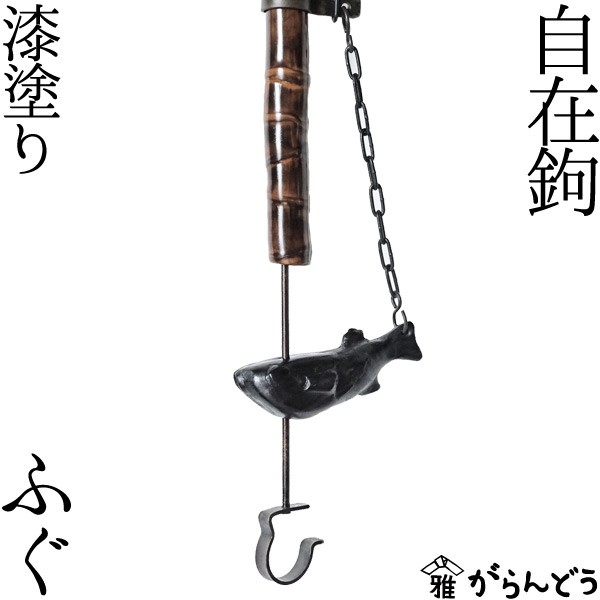 送料無料 自在鉤 小 ふぐ 天然竹 漆塗り 囲炉裏 山中漆器 自在かぎ