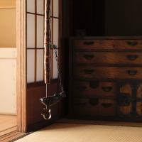 昔ながらの技術と知恵を用い、天然木で作られた自在鉤。