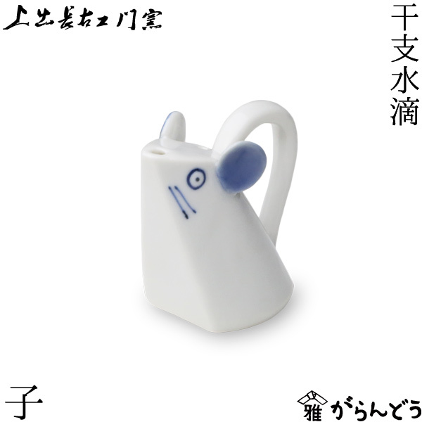 上出長右衛門窯 干支 水滴 子 書道具 ネズミ 九谷焼 日本製 磁器