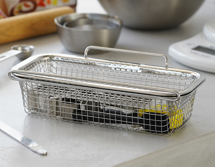 上アミを裏返すことで中の高さを変えられるので、箸置きやカトラリー類など、背の低い小物類も動きにくくなります。洗う小物の数が少ないときも安心です。