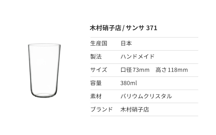木村硝子店と、赤坂のビアバー sansa(サンサ)が協力して作り上げた「サンサ 371」。