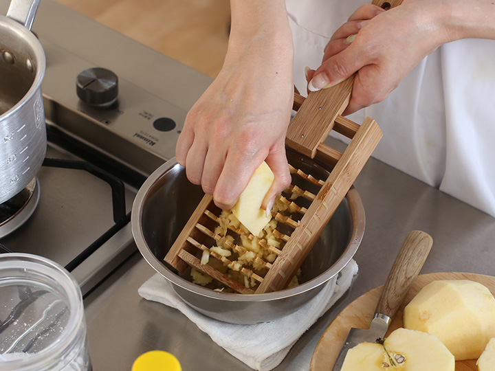 鬼おろしでおろしたりんごジャムの調理時間は15分ほどで完成、手早くおいしいジャムが作れます。