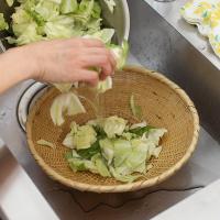 3〜4人前分の野菜の盛皿として盛り付けられます。水気もほどよく切れるので、余分な水分が鍋に入らず味が薄まりにくいです。