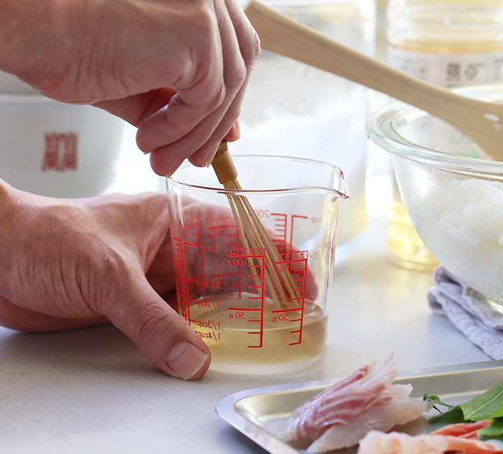 料理の仕上げに掛けるソースやサラダのドレッシング、合わせ調味料を作る時に。小さなボウルでも扱いやすく、ストレス無く混ぜ合わせることができます。