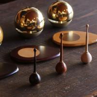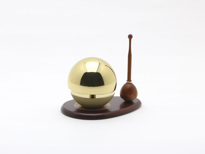 りん棒は底の部分に起き上がりこぼしの仕組みを利用し、転がらず倒れません。持ち手がつまみやすく、程良い重さでおりんを鳴らすことができます。りん棒だけで自立するのスペースをとりません。