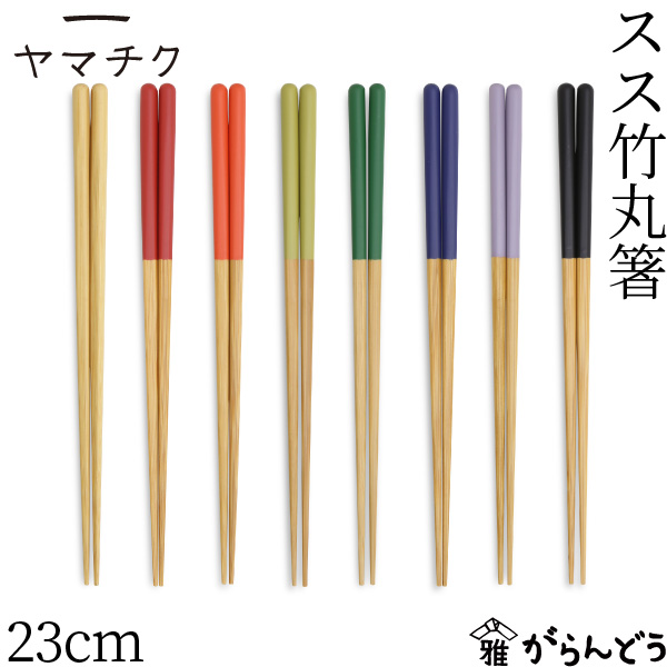 丸みがある形と落ち着いた色合いがかわいい、ヤマチクのスス竹丸箸です。