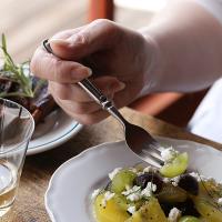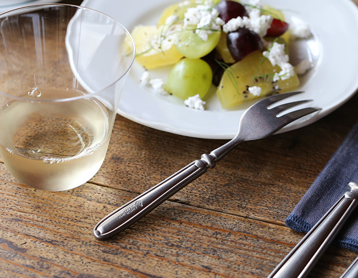 アンティークのように加工されたフォークは、まるで使い込まれたような風合い。重厚感と上品さのあるカトラリーは、食卓を品のある雰囲気にしてくれます。