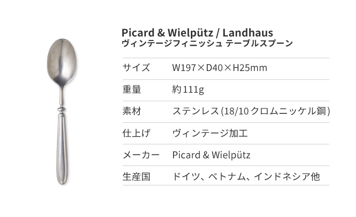 製造しているのはドイツのカトラリーメーカー Picard & Wielpuetz(ピカード&ヴィールプッツ)。古くから刃物とカトラリーの街ゾーリンゲン市にあり、その伝統を真摯に受け継ぎ、シンプルで機能的なカトラリーを作り続けています。