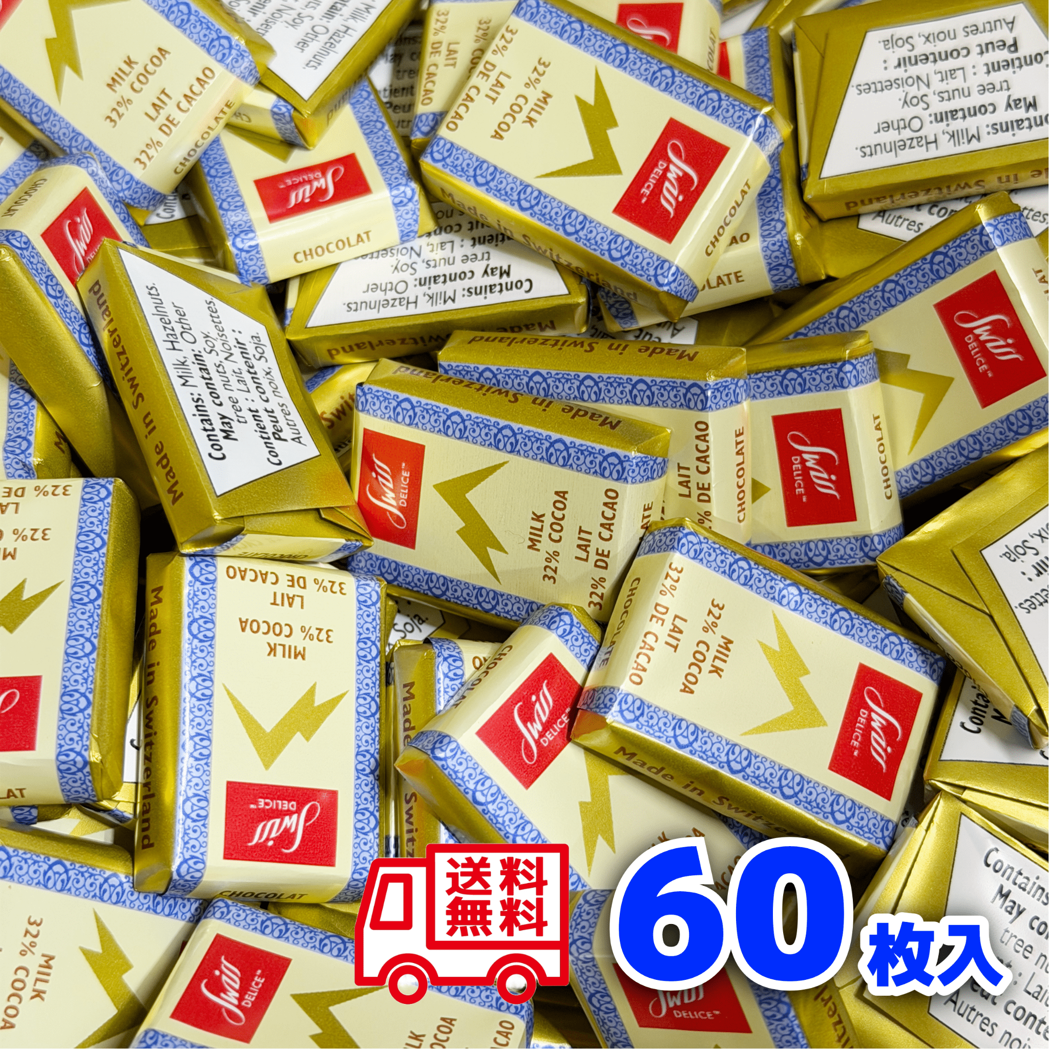 60枚入 スイスデリス ミルクチョコレート カカオ32% Swiss Delice お菓子 詰め合わせ 個包装 送料無料 ポイント