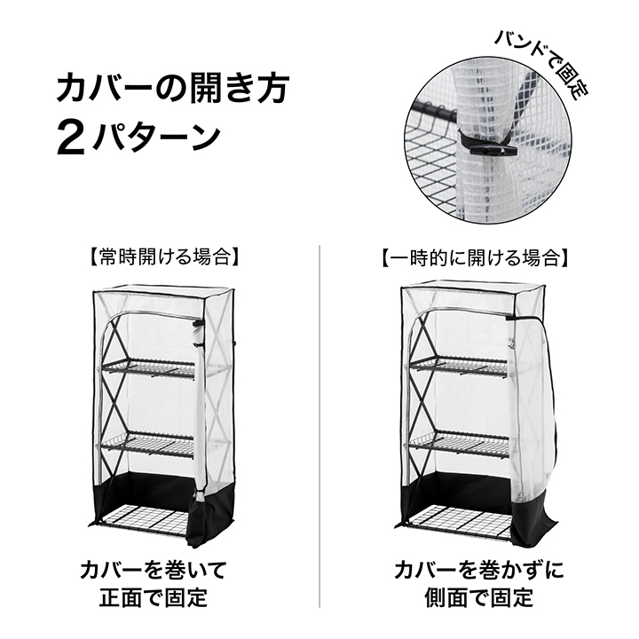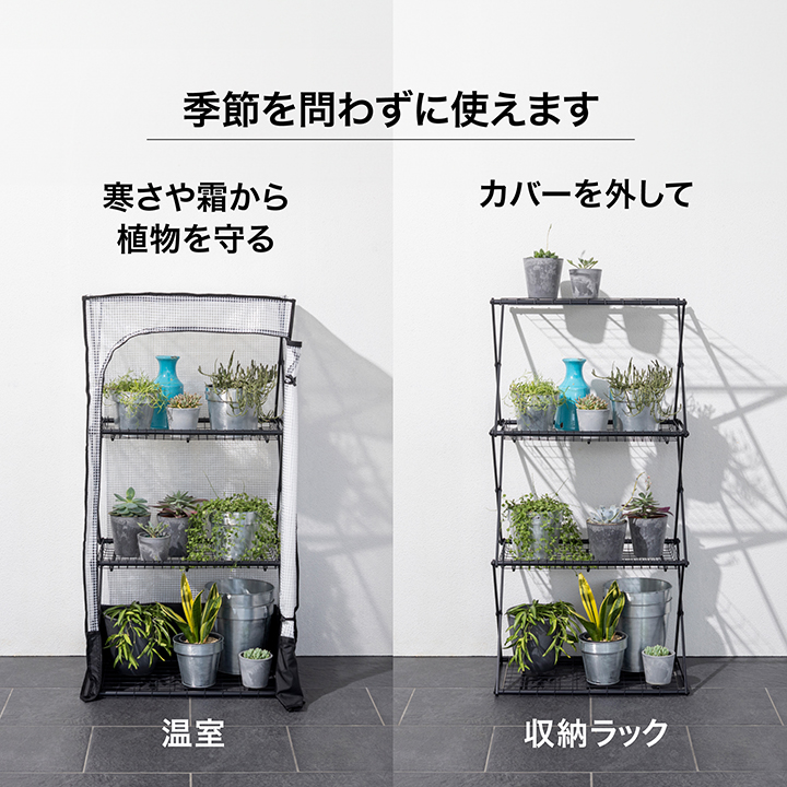 寒さや霜から植物を守るビニール温室!フレームは折り畳み式、シーズンオフにはコンパクトに収納できます。
