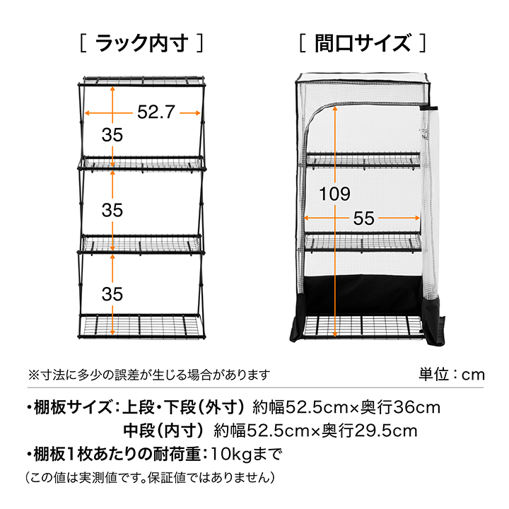 [棚板1枚あたりの耐荷重]10kgまで(上・中・下段)※この値は実測値です。保証値ではありません。