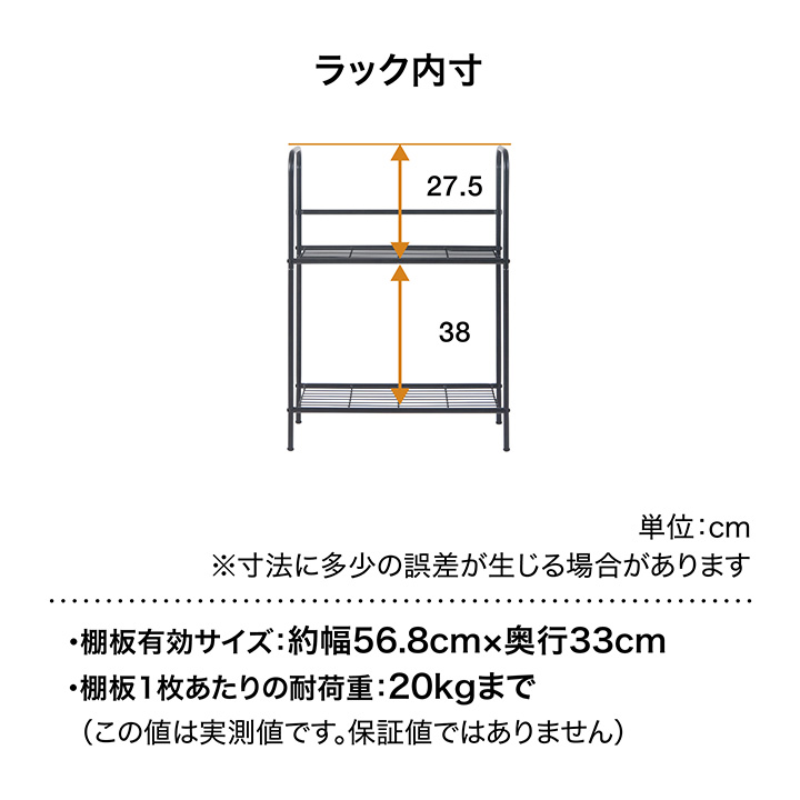 [棚板1枚あたりの耐荷重]20kgまで※この値は実測値です。保証値ではありません。