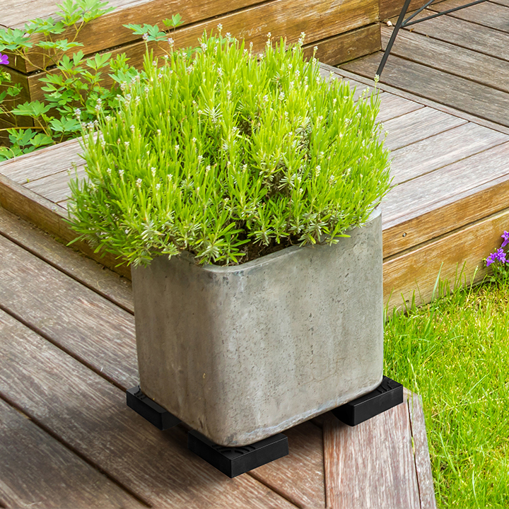 滑り止めが刻まれた4ピースでしっかりと鉢を支え、鉢の形状や大きさを問わずに使える実用的なポットフィート。