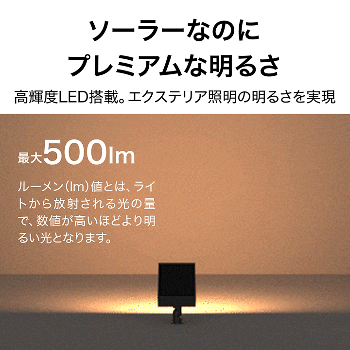 しっかりと明るく照らすソーラーライト。植栽や壁面を照らし、美しい景観を演出するライトアップ