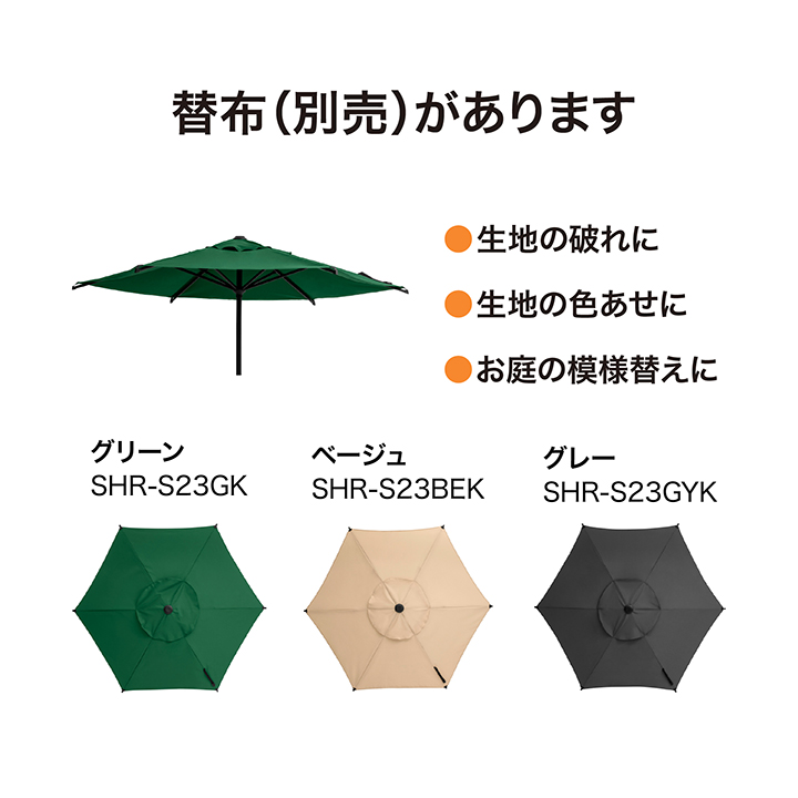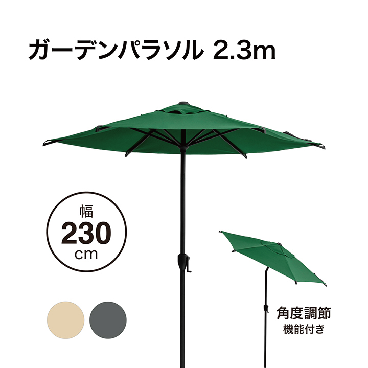 パラソル 日よけ 遮光 紫外線 UV 影 庭 ガーデン タカショー / ガーデンパラソル 2.3m グリーン ベージュ グレー /中型