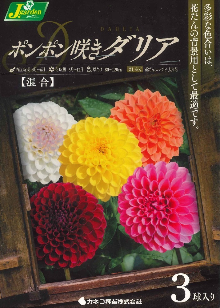 春植え球根 ダリア ポンポン咲きダリア混合 3球入〜ガーデン ダリア