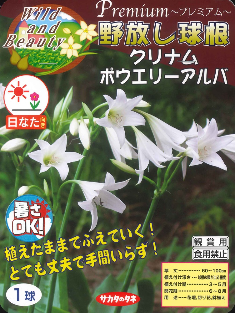 春植え球根 野放し球根プレミアム クリナム ポウエリーアルバ 1球 〜 特大球 暑さOK カンタン放植 はまゆう ハマオモト