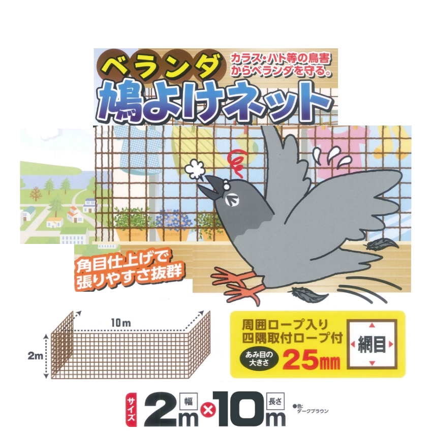 ベランダ鳩よけネット 2m×10m 25mm角目