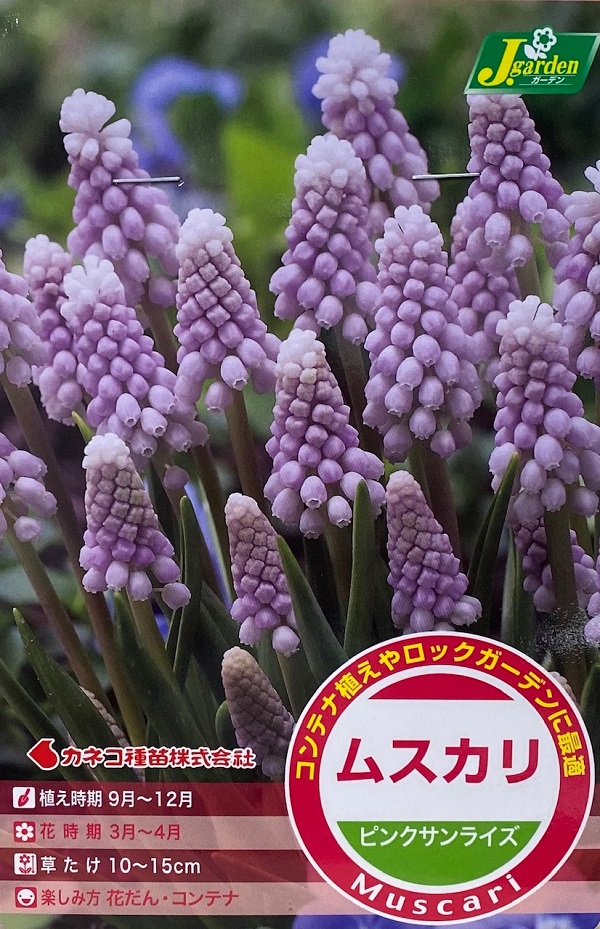 | ムスカリは栽培しやすく、春の花だんを華やかに彩ります。 小花を密につけてとても可愛く、花だんのふち取り、 チューリップやスイセンなどとの寄せ植え、コンテナガーデニングなどに最適です。  | |