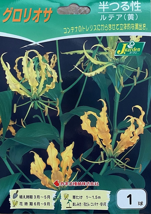 | 半つる性の球根植物で、トロピカルで豪華な花が人気です。 赤と黄色、葉の緑のコントラストが美しく、アレンジメントや鉢花にとても人気があります。 花持ちもよく、長く楽しめます。日当たりのよい場所で管理して下さい。 水が大好きなので、切れないように注意しましょう。トレリスや支柱を立ててください。 つるが伸びて次々と花を咲かせてくれます。 | |