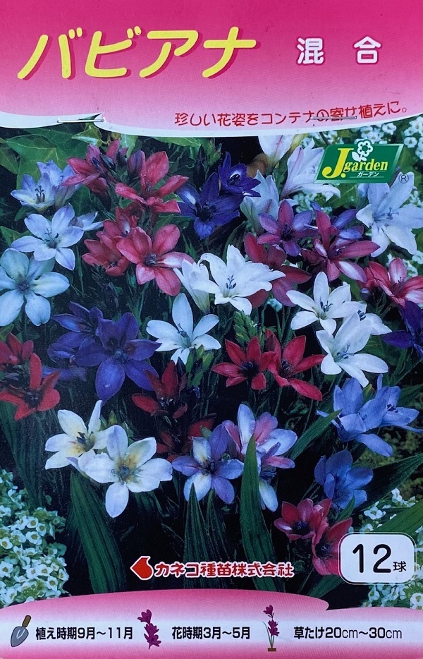 | 南アフリカ原産のアヤメ科の植物。 珍しい花姿は春を美しく彩ります。 寒さに弱いので、おもに鉢植えやコンテナの寄せ植えで楽しみます。 暖かい地方では花だん植えも楽しめます。  | |