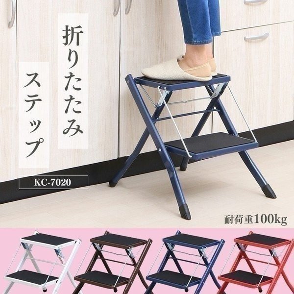 踏み台 折りたたみ 2段 耐荷重 約100kg 滑り止め 軽量 持ち運び簡単 コンパクト収納 簡易スツール 折りたたみ踏み台 折り畳み ステップ KC-7020 *