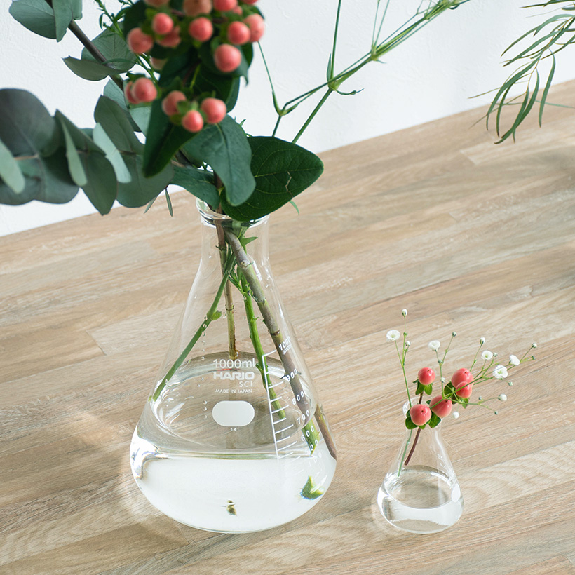 - HARIO RELAXING - 三角フラスコ 1,000mL  HARIOの耐熱ガラスは、100%天然の鉱物を私用した、地球に優しい素材でできています。