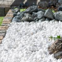 自然素材の大理石の砂利です。 特に和風庭園やアプローチ、花壇回りに使用されます。 雪のように真っ白で毎朝和ませてくれます。 石質が固く車の重量にもよく耐えます。 薬剤不使用。 材質:砂利(自然石) |