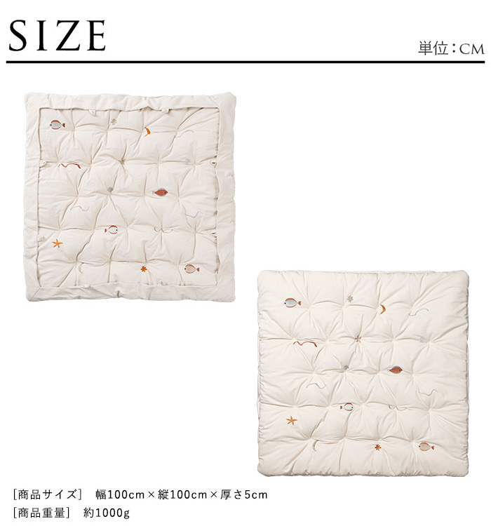 | 【[材質]】・生地:刺繍入りオーガニックコットン100% ・中綿:リサイクルポリエステル 【[カラー]】ナチュラル 【[商品サイズ]】幅100cm×縦100cm×厚さ5cm 【[商品重量]】約1000g 【[生産国]】インド 【[特徴]】・赤ちゃんに安心で快適な時間を オーガニックコットンに海の生き物の刺繍をあしらった、ゆるやかで優しい世界観のプレイマットです。 CEテスト済みなので安心してお使いいただけます。 ・ferm LIVINGならではの世界観 他のブランドには見られない、ゆるやかで優しい雰囲気が特徴。 ナチュラルな素材感とやわらかな色使いが調和し、ferm LIVINGらしいオーガニックなデザインに仕上がっています。 ・こだわりの素材とディテール 特製無染色オーガニックコットンキャンバス生地を使用。 海の生き物のモチーフを刺繍であしらったデザインと、さりげないキルティングのディテールが快適さをプラスします。 ・おもちゃを取り付けられる8つのループ ループ付きのファブリックパネルは、折りたたんでおもちゃをすっきりと収納することも、収納してデザインを際立たせることもできます。 ■お手入れ方法 30℃で優しく洗ってください。 ■ferm LIVING(ファームリビング) 創設者であるTrine Andersen(トゥリーネ・アンデルセン)がデンマークで2006年に設立。 昔ながらの北欧デザインに沿いながらも、現代的なアレンジを加えており、北欧らしい温かみのあるカラーリングとシンプルで機能性を兼ね備えた他にはないユニークなデザインのブランドです。 日々の生活の心地よい刺激になるような機能性のあるデザインを追求しており、世界中の職人さんと協力することで、スカンジナビアの精神を持ちながらも各国の技術や伝統を活かしたモノづくりを行なっています。 |