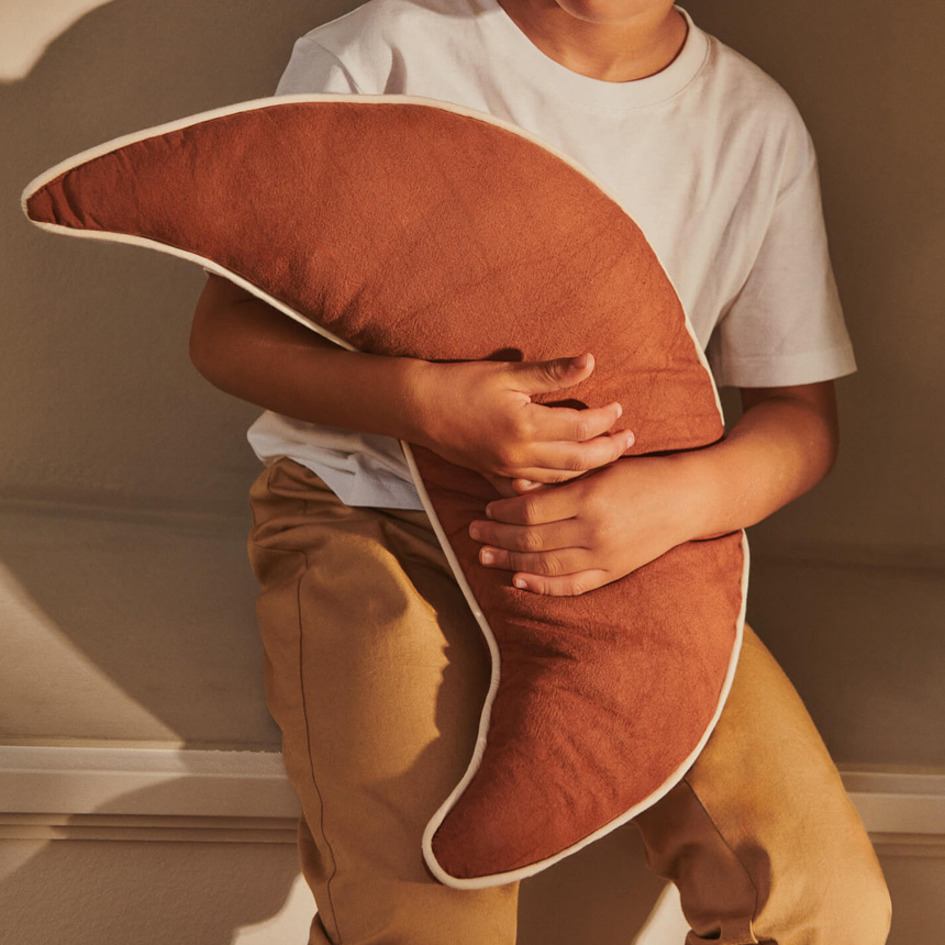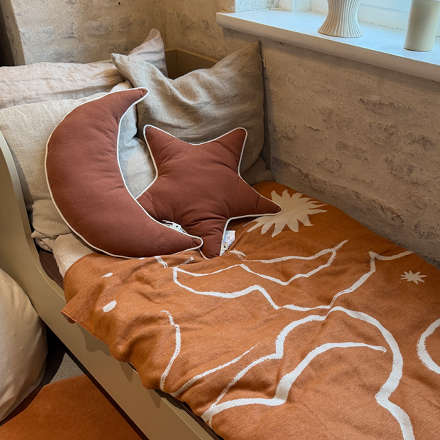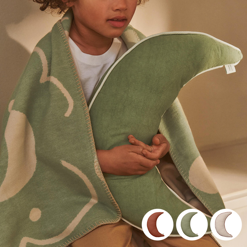 | 【材質】オーガニックコットン100%、中材:リサイクルポリエステル 【サイズ】幅31cm×高さ47cm×奥行き8cm 【重さ】220g 【特徴】■ferm Livingらしい大人も使える可愛らしいクッション 2026年新作として登場した、三日月のシルエットが印象的なクッション。 やわらかなフォルムと程よい可愛らしさで、キッズ空間はもちろん大人のインテリアにも自然に溶け込みます。 ■天体モチーフの遊び心あるデザイン お星さまモチーフのデザインと組み合わせることで、より世界観のあるコーディネートが完成。 ソファやベッドに並べて飾ることで、空間にリズムと楽しさをプラスします。 ■空間をやさしく彩るアクセント 子供部屋にはもちろん、ベッドやソファに取り入れることで、遊び心のあるやさしい雰囲気を演出。 日常の空間にさりげない個性と温もりを添えてくれます。 ■素材とディテール 100%オーガニックコットンを使用し、やさしい肌触りに仕上げています。 中綿にはリサイクルポリエステルを採用し、環境にも配慮。 縁に施されたコントラストカラーのパイピングが、デザイン全体を引き締めるアクセントになっています。 【生産国】India |