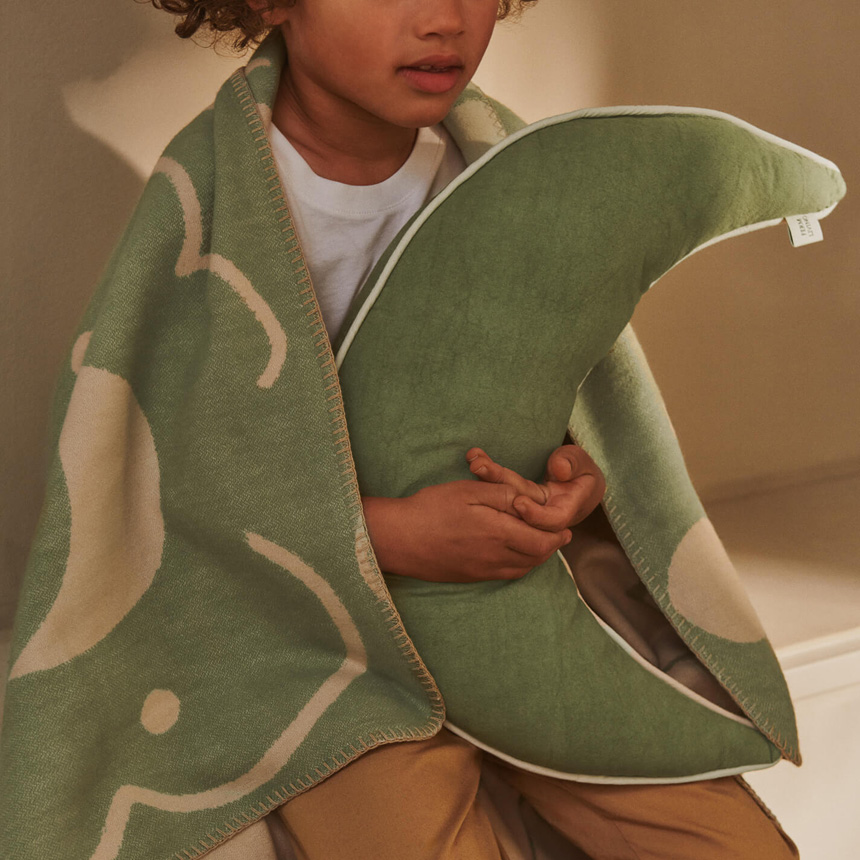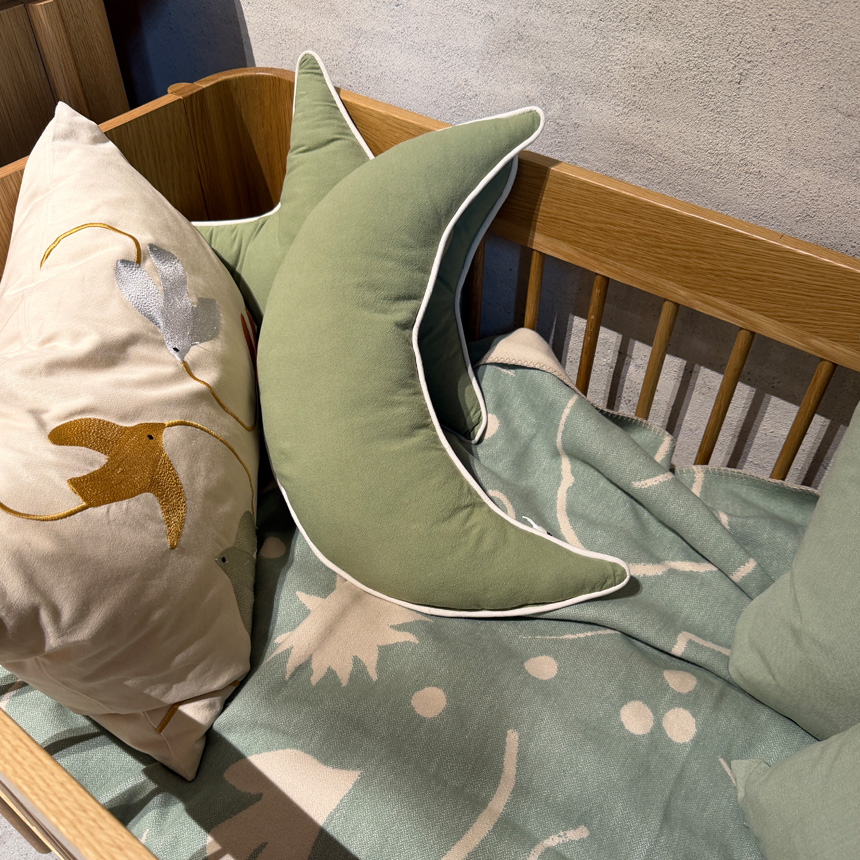 子供部屋にはもちろん、ベッドやソファに取り入れることで、遊び心のあるやさしい雰囲気を演出。