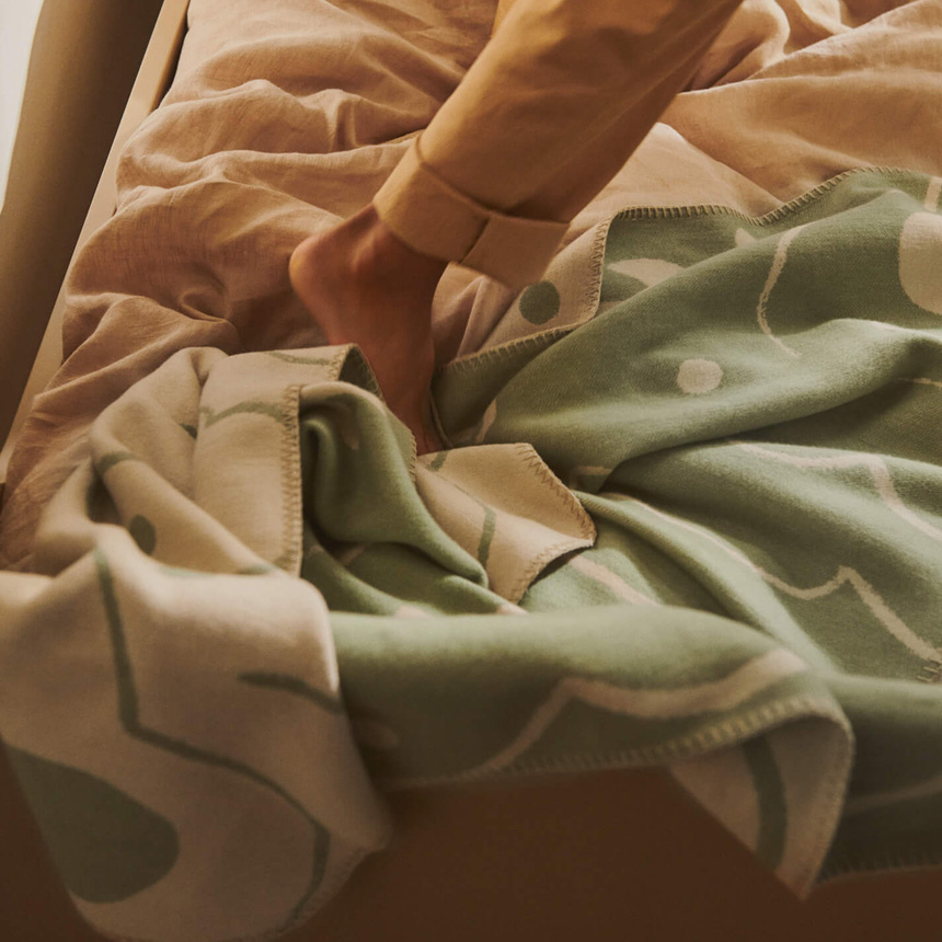 リバーシブル仕様で仕立てられたスカイブランケット。