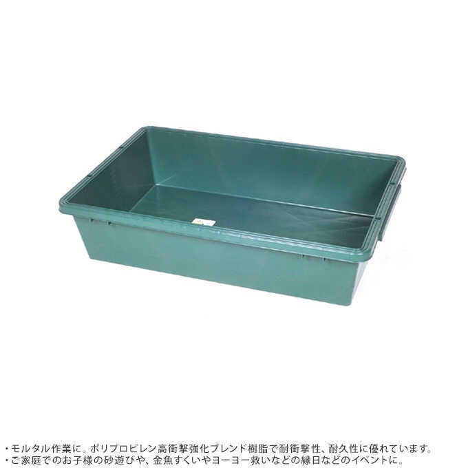 | 【カラー】グリーン 【材質】ポリプロピレン樹脂 【サイズ/重さ】外寸:幅103×奥行66×高さ24cm 底面内寸:幅91.5×奥行54.5cm 容量:120リットル 重量:約4.6kg 【備考】モルタル作業に。ポリプロピレン高衝撃強化ブレンド樹脂で耐衝撃性、耐久性に優れています。ご家庭でのお子様の砂遊びや、金魚すくいやヨーヨー救いなどの縁日などのイベントに。 |