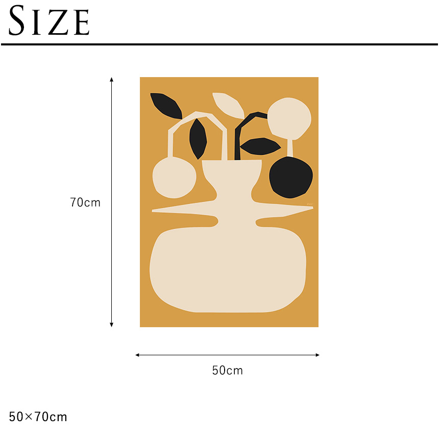 | 【材質】紙 230g (FSC認証) 【サイズ/重さ】50×70cm 【備考】■都市のリズムと自然の静けさを繋ぐアート 「Jarron」は、メキシコの街角に並ぶテラコッタの鉢をモチーフに、都市の活気と素朴な温もりをグラフィックに表現した作品です。 温かみのあるイエローの背景に、ベージュと黒の鉢が柔らかく浮かび上がり、力強さと優しさを兼ね備えた印象を与えます。 ■有機的フォルムと軽やかな構成 2本の茎が伸びた構造的なシルエットは、有機的でありながら秩序を感じさせ、自然と人の営みの融合を象徴しています。 大胆なラインと繊細なバランス感覚が、視覚的に軽やかで洗練された空気感を生み出します。 ■空間に落ち着きと温かさを添える一枚 リビングや玄関など、パーソナルな空間に静かに溶け込み、穏やかな存在感で日常に寄り添うアートです。 【生産国】デンマーク 【製品内容】パッケージ、ポスター(本体)、※フレーム別売り |