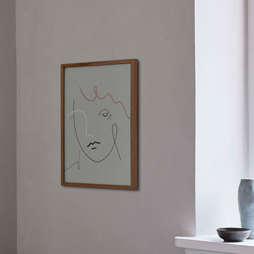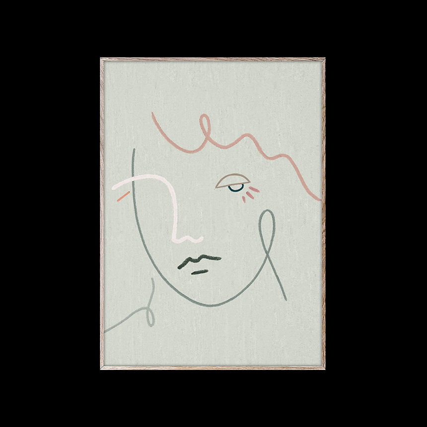 | 【材質】紙 230g (FSC認証) 【サイズ/重さ】50×70cm 【備考】細い線とスクイグル(揺らぐ線)の連なりによって形作られた、印象的なアート作品です。 ダスティグリーンの背景の上に、深い緑、ピンク、白のラインが重なり合い、柔らかな表情を持つひとつの横顔が浮かび上がります。 Gertrude(ガートルード)は英語圏の女性名で、古くから歴史上の人物名や文学作品の題名としても登場します。 その語源には「強さ」を意味する由来があり、力強く、芯のある女性像を連想させます。 この作品では、女性の姿をテーマとしながらも、線の軽やかさやパステルトーンの色使いが、強さだけでなく優しさや繊細さも感じさせます。 女性の瞳は天井のライトにも、また未知の存在であるUFOにも見えるような、解釈の余地を残す表現。 観る人それぞれに異なる物語を想像させる、不思議な魅力を持ったアート作品です。 【生産国】デンマーク 【製品内容】パッケージ、ポスター(本体)、※フレーム別売り 【デザイナー】Kit Agar(キット・アガー) |