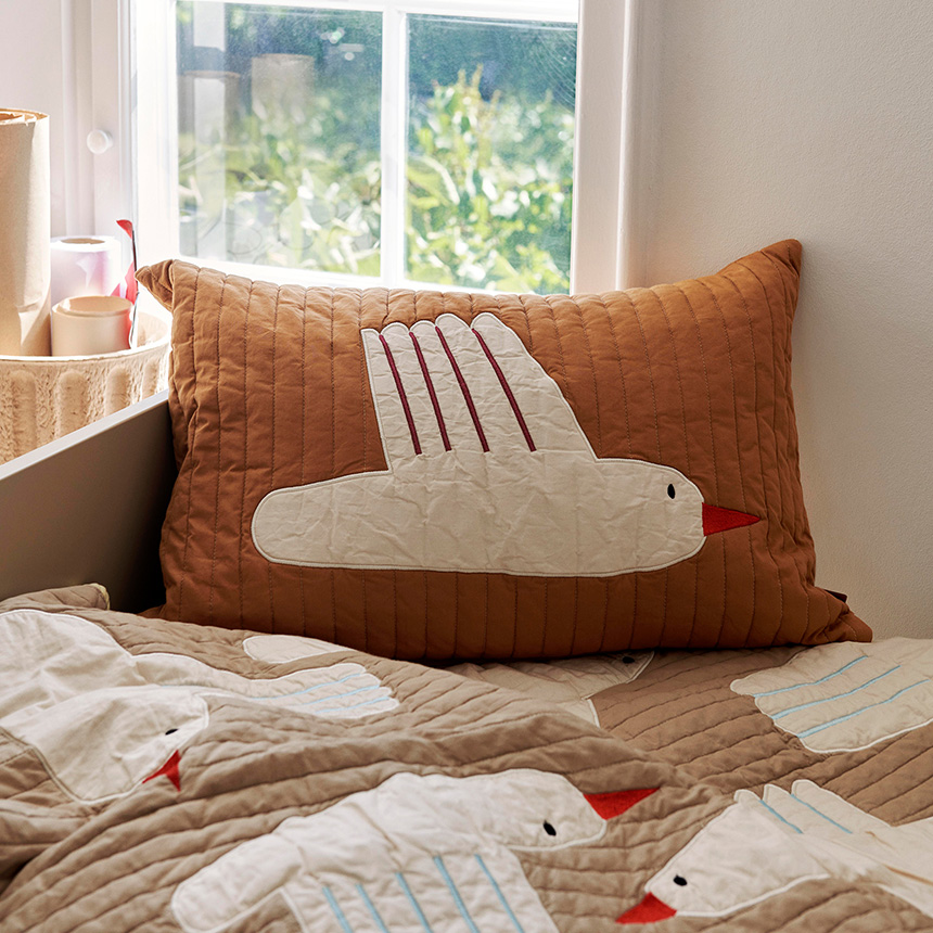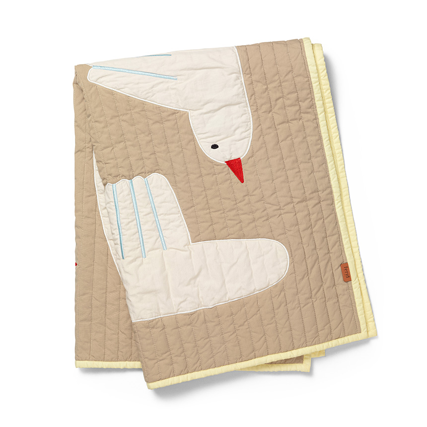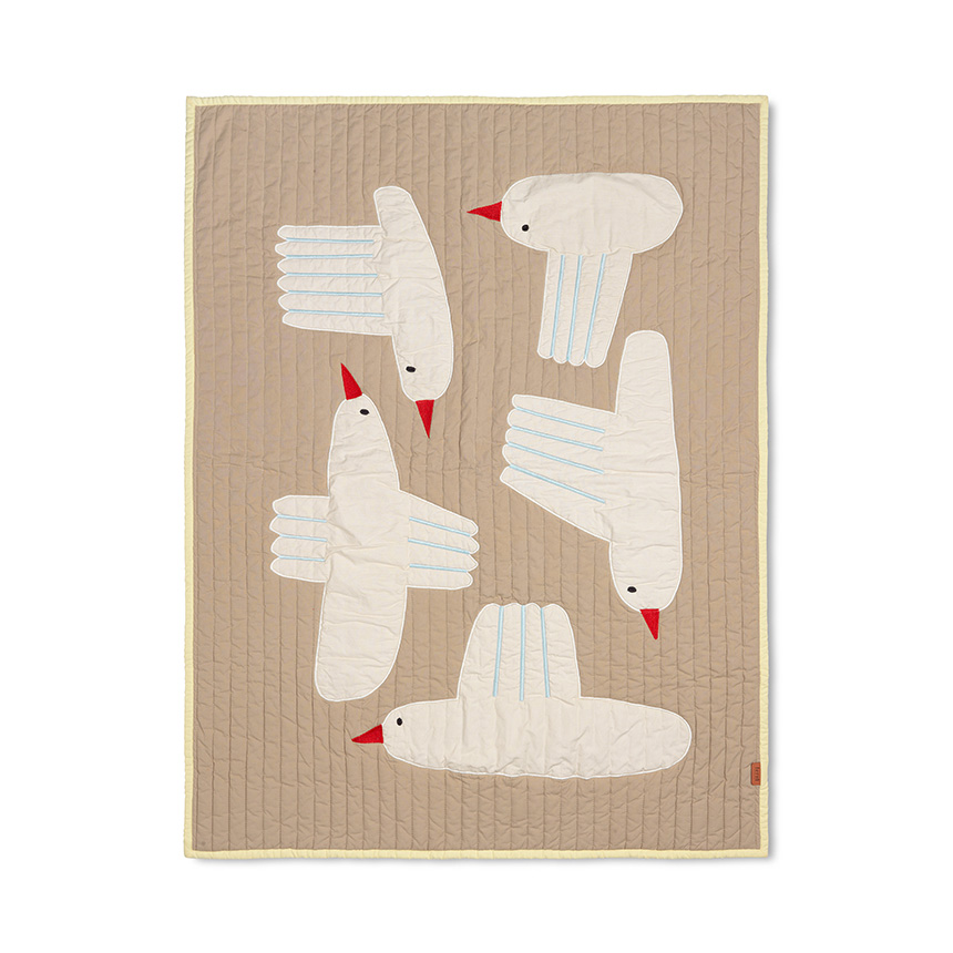 ユニークな鳥のデザインが印象的な「バード キルトブランケット」は、