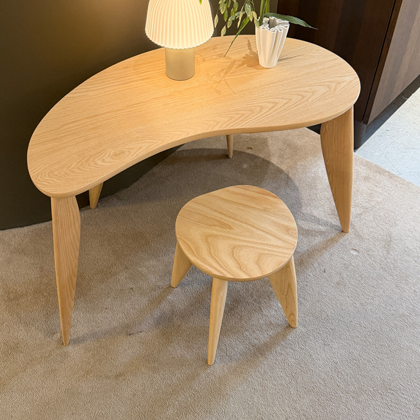 これまでテーブルやデスクで展開されてきた、アシンメトリーで柔らかな曲線のデザインに、新たなバリエーションが加わりました。