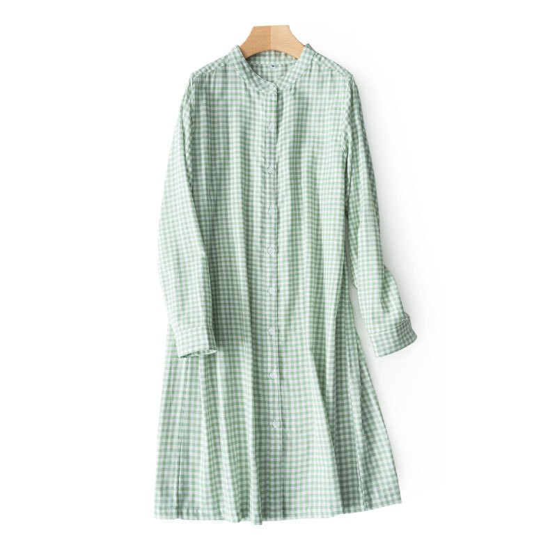 ルームウェア レディース ルームワンピース ネグリジェ 前開き 衿つき チェック柄 入院 産後 マタニティ スリーパーパジャマ ロング丈 綿100% 2重ガーゼ 全2色