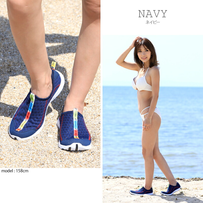 スポーツシューズをイメージしたマリンシューズ。夏らしいカラーリングもアクセント