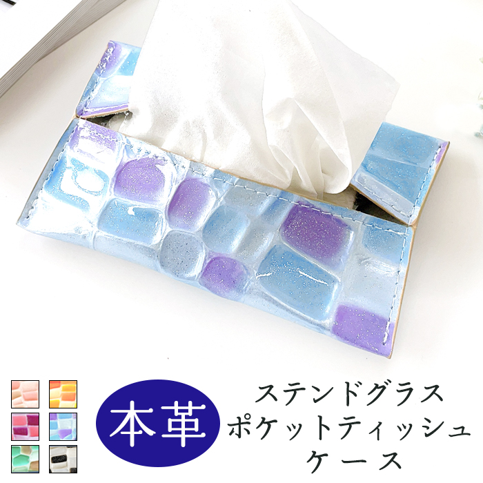 ◆ 本革 ステンドグラス ポケットティッシュケース ◆