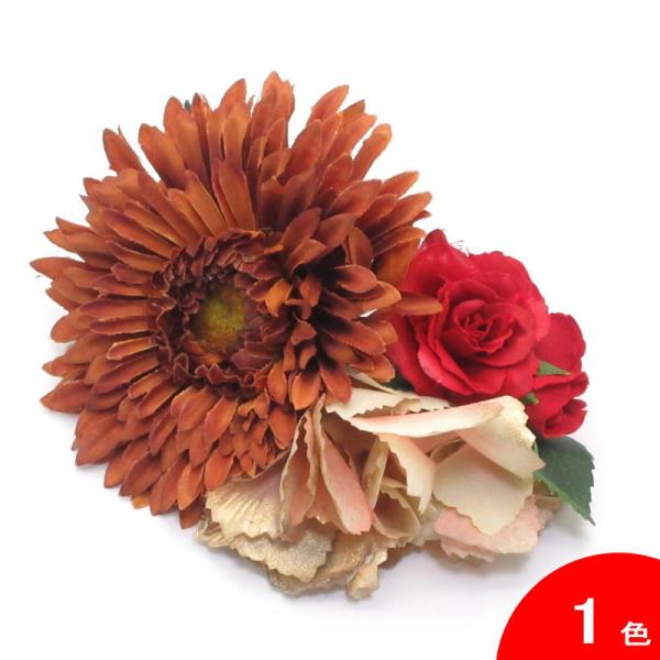 おすすめポイント: 上品な大人色の花を流行の花束風髪飾りに仕立てました。 メインの花はブロンズ色(やや赤みのあるブラウン)のガーベラです。 同系色のブロンズ色やゴールドのアクセサリとの相性が抜群です。 赤みのあるガーベラの色の魅力を損なわないように、同系色の赤いバラやゴールドをまとった淡いピンクのハイドランジアを合わせました。 --- 【在庫限り】 --- 素材: 化繊、金属など サイズ(cm): 花部分の大きさ 約12.5×10.5 (掲載のサイズは製品の実測値です。多少の個体差がありますがご容赦ください。) 【コーディネイト例】 ・メタルのペイネシージョ (小さな櫛) Coral (コラール) 色:コラール ・ブロンズ色のイヤリング Marta(マルタ) 色:サンゴ |