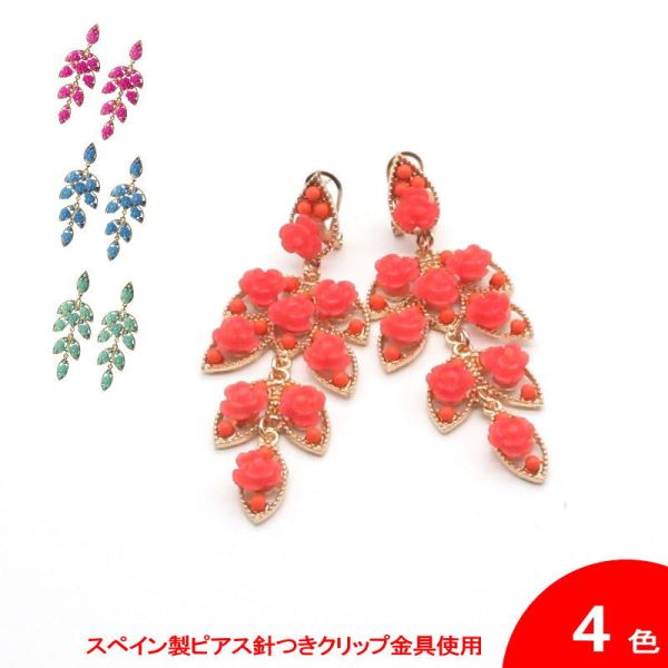おすすめポイント: エレガントなゴールドのスカシパーツに可愛らしいバラがたくさんついた、イヤリング(ピアス)です。 --- 【ピアス針つき】ピアス針とクリップが両方ついたスペインの留め具を使用しています。 --- 素材: プラスチック・金属 サイズ(縦の長さ×横幅)cm: 約9.0(飾り部分の長さ:7.0)×3.0 (掲載のサイズは製品の実測値です。多少の個体差がありますがご容赦ください。) 【コーディネイト例】 ・メタルのペイネシージョ(小さな櫛) Camelia(カメリア) 色:ゴールド ・オレンジのラナンキュラスと緑のダリアの花束風 BG-17 |
