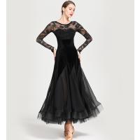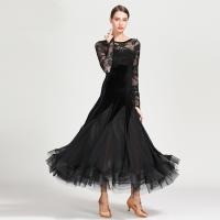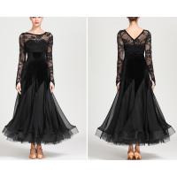 Garuda SHOP 社交ダンス衣装レディース ダンスレッスン練習ロングワンピース 競技会試合ドレス レース袖セクシー 3色 品番1380