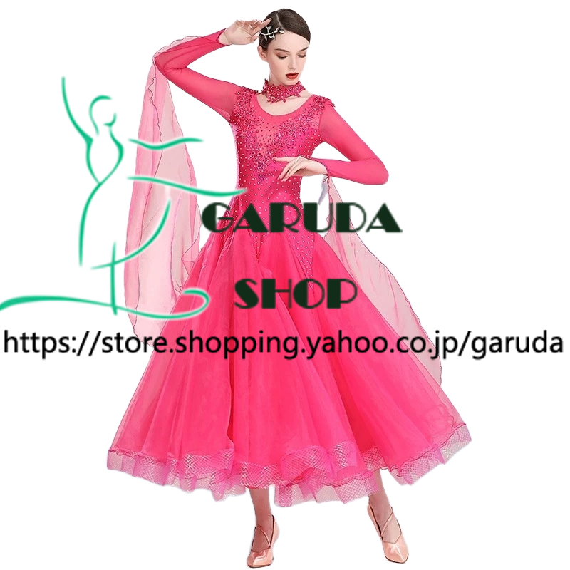 Garuda SHOP 社交ダンス衣装レディースモダンドレス 発表会ワルツドレス モダン競技試合ワンピース 2色ダンスドレス サイズ調整対応 品番9299
