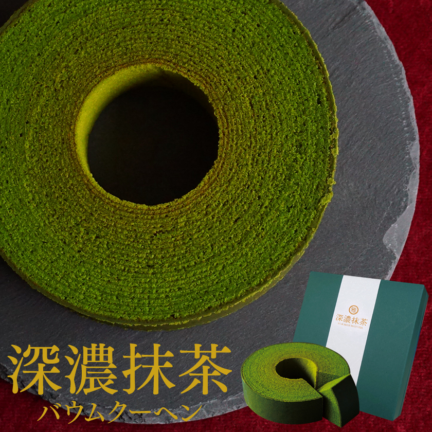 深濃抹茶バウムクーヘンは抹茶の濃さにフォーカスした特濃スイーツで、雅正庵の抹茶バウムクーヘンのおよそ2.5倍抹茶を使用!
